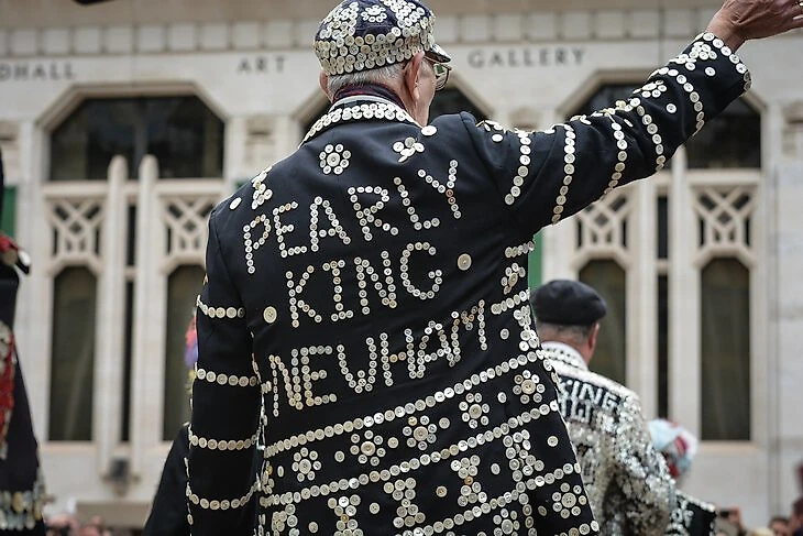 В 1885-м один из молодых костермонгеров по имени Генри Крофт обнаружил в лондонских доках брошенный корабль, в в трюме нашел настоящее сокровище – груз перламутровых пуговиц. Находка натолкнула Генри на остроумную мысль – он провозгласил, что отныне каждый из районов, входящих в восточный Лондон, станет Перламутровым королевством со своими Королем и Королевой, которые будут использовать свою власть для сбора денег на благотворительные нужды сообщества.
