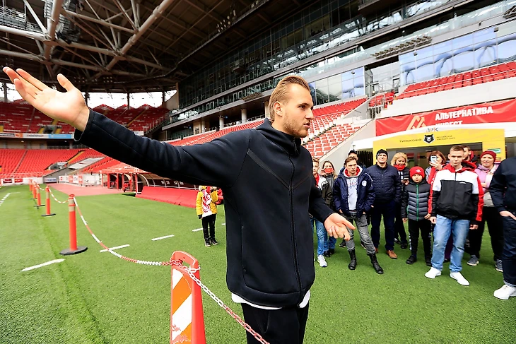 Вратарь красно-белых Александр Максименко принял участие в экскурсии по «Открытие Банк Арене» и спартаковскому Залу Славы.