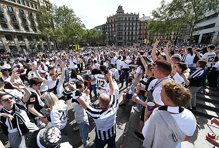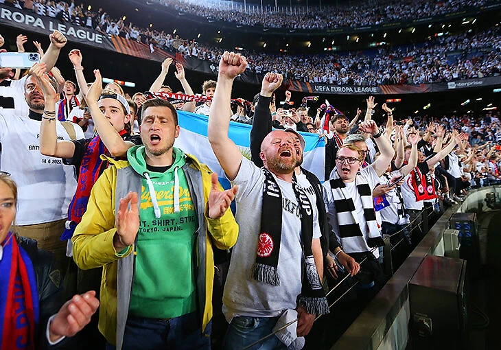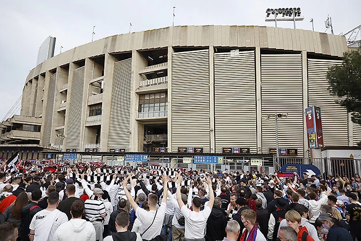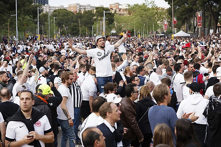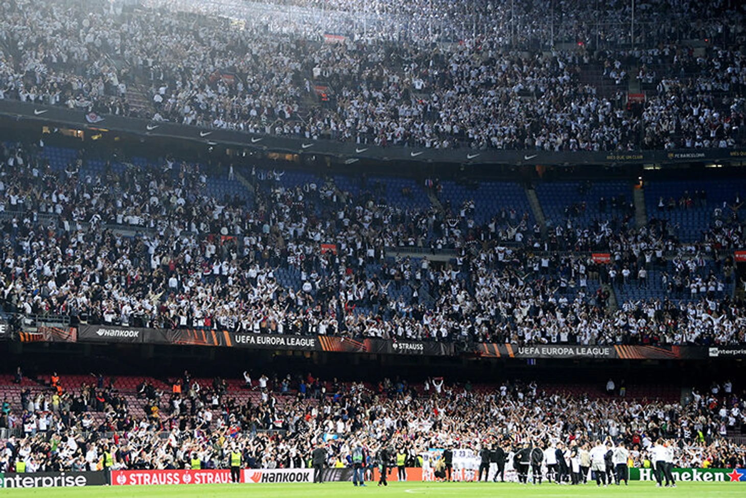 «Айнтрахт» ярко провел матч с «Барселоной» и увез из Каталонии победу (и выход в полуфинал). Болельщики франкфуртского клуба выступили не менее ярко. В Каталонию их приехало 20-30 тысяч человек – несмотря на игру посреди недели!