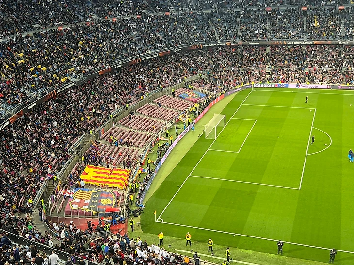 Сейчас в Каталонии начинаются пасхальные выходные – четыре нерабочих дня. Часто это время используют, чтобы выбраться на природу. Похоже, много кто из держателей абонементов так и поступил, а места на нестатусную Лигу Европы продали через интернет. Так гости из Франкфурта получили доступ к билетам.
