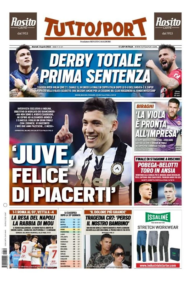 TuttoSport: «Ювентус», приятно нравиться тебе»: «Эксклюзивное интервью с Молиной, трансферной целью Бьянконери: «Но я не новый Куадрадо, меня вдохновляют Александер-Арнольд и Канселу. Хочу отличной концовки с «Удинезе». Я расскажу вам о моих двух сумасшедших годах… и о Месси».