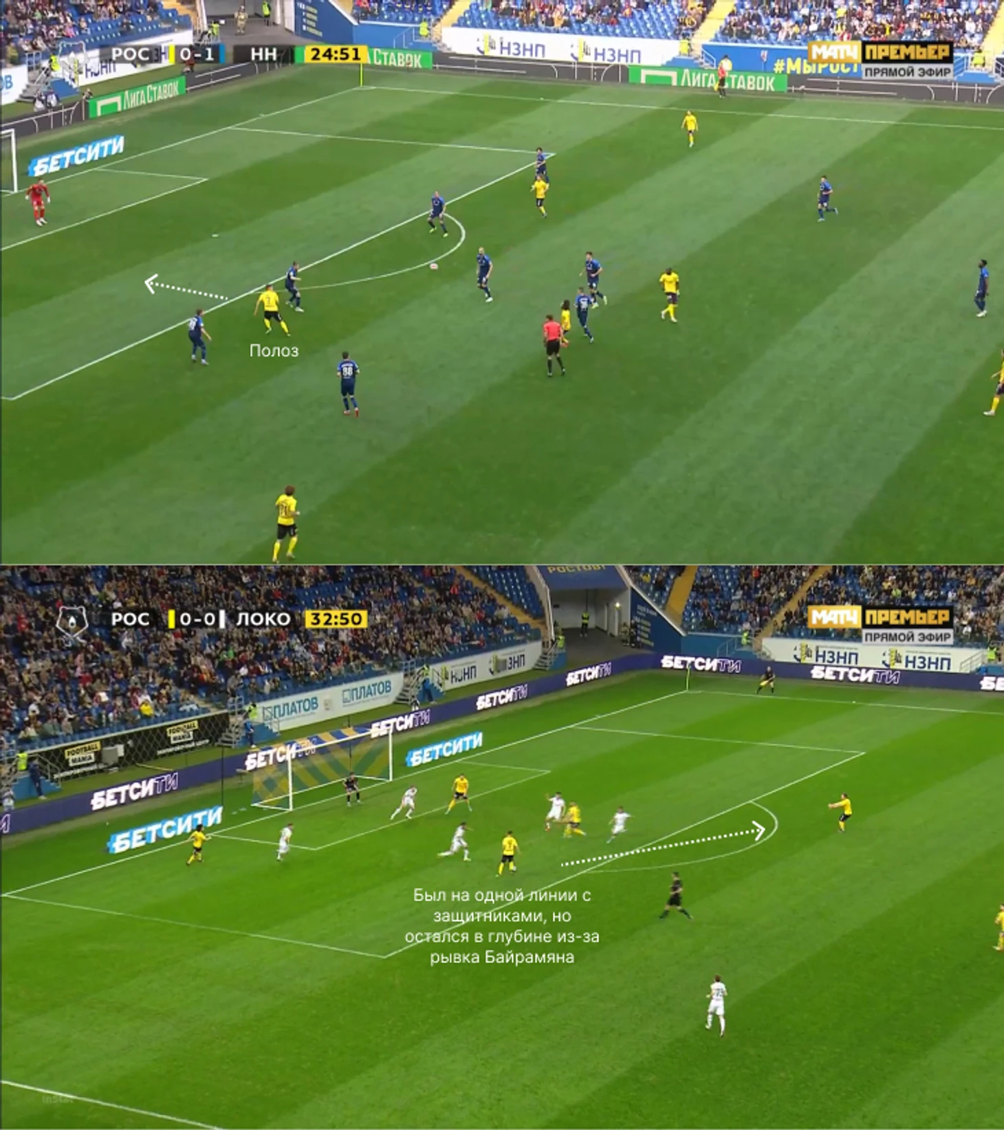 Тактический диапазон демонстрируют и другие матчи: против «Локо» Полоз балансировал рядом с защитниками и выдал ассист на Щетинина (отскочил в глубину), а против «Нижнего» ворвался под проникающую передачу.