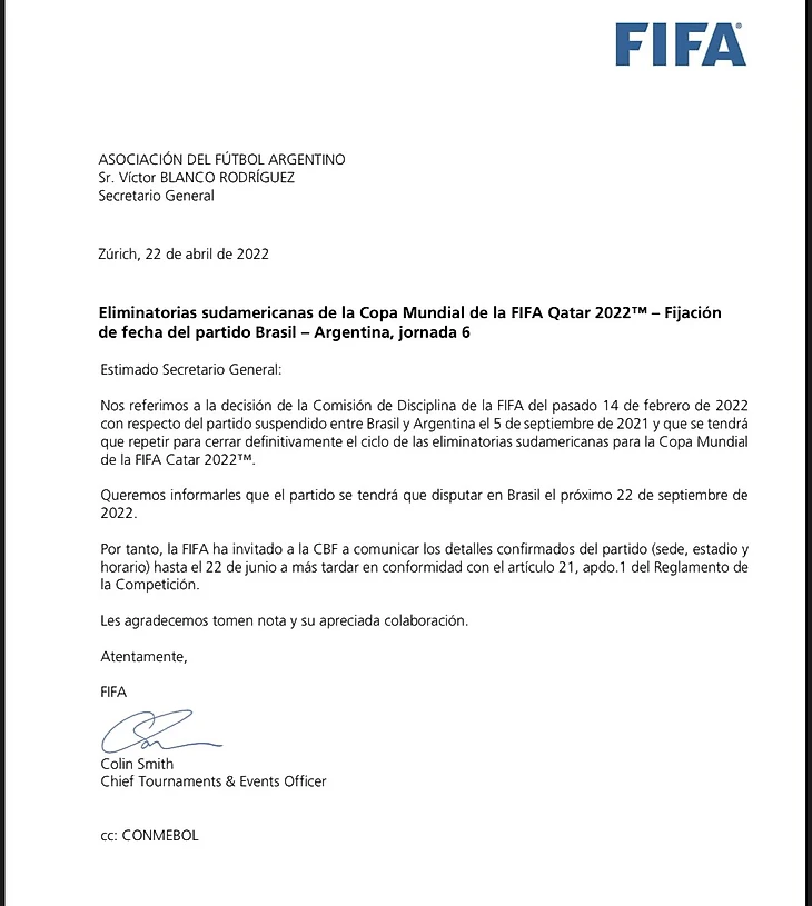 Ну что, друзья, решение по сорванному прошлой осенью матчу Бразилия-Аргентина наконец-то принято официально.