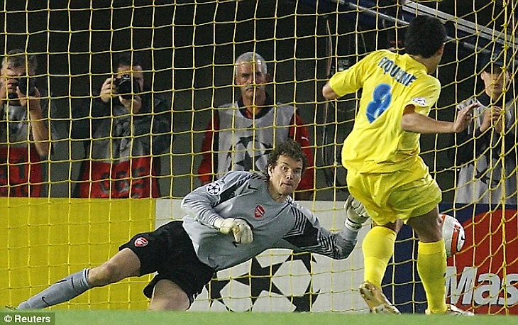В полуфинале «жёлтая субмарина» нарвалась на великолепный «Арсенал» Венгера. Практически любая фамилия из тогдашней заявки «канониров» вызовет у болельщиков со стажем море приятных эмоций. В Лондоне «Арсенал» прижал «Вильярреал» к воротам, которые защищал аргентинский кипер Мариано Барбоса, заменивший на последнем рубеже уругвайского коллегу Виера. Испанцы подавляющую часть матча отбивались и пропустили лишь однажды. Прострел Александра Глеба замкнул Коло Туре.