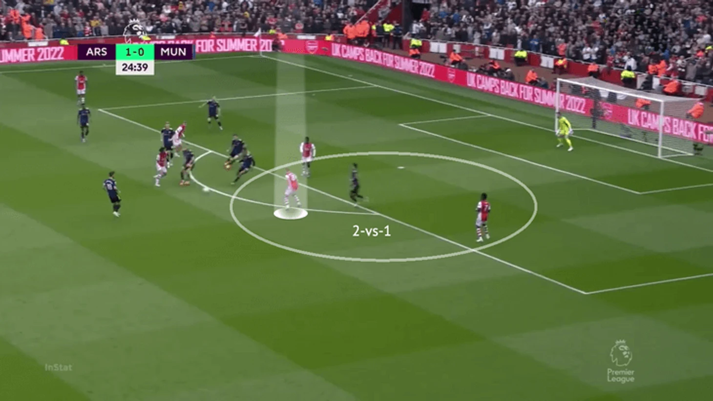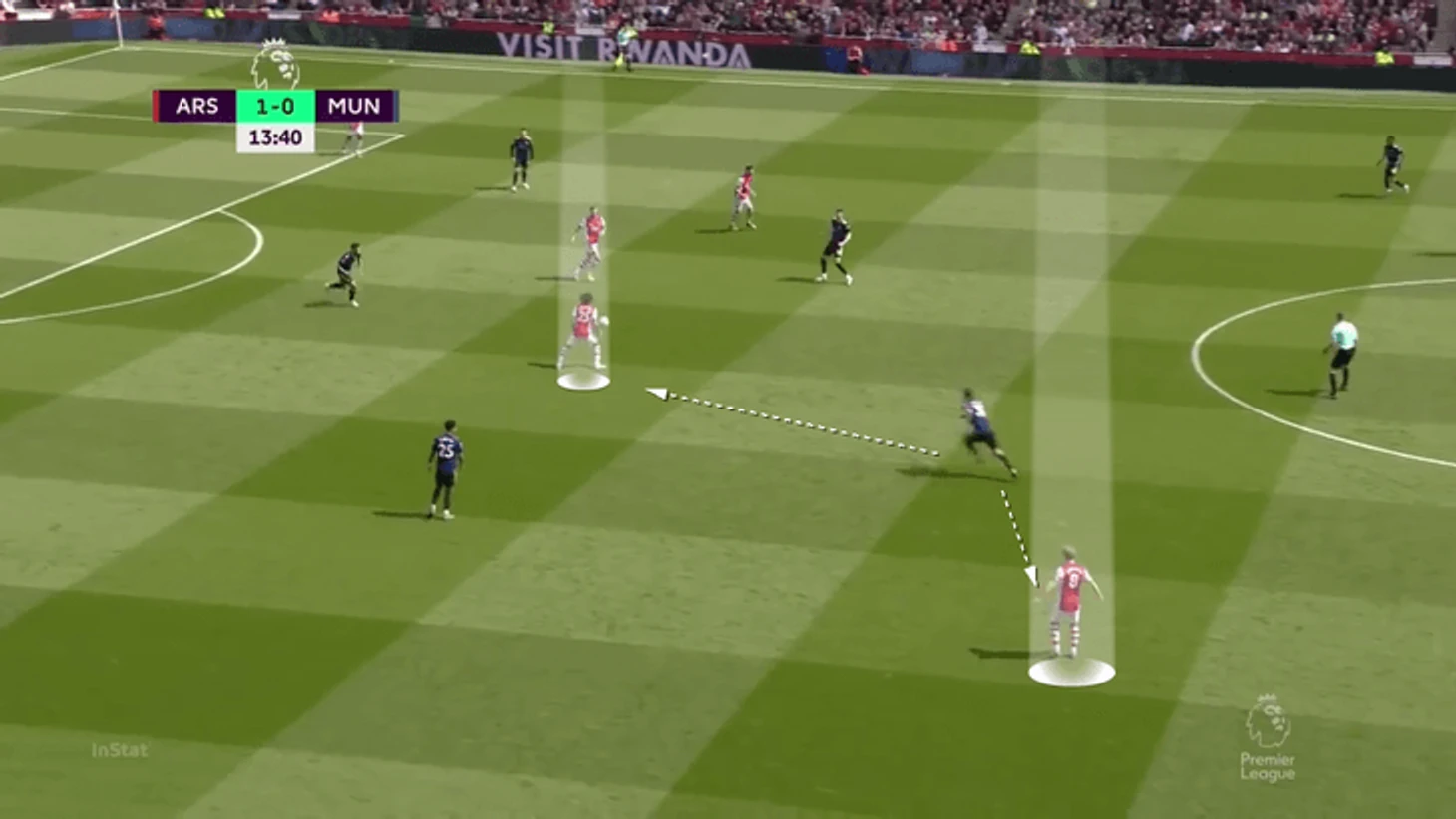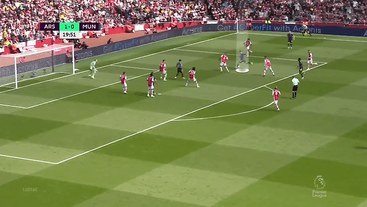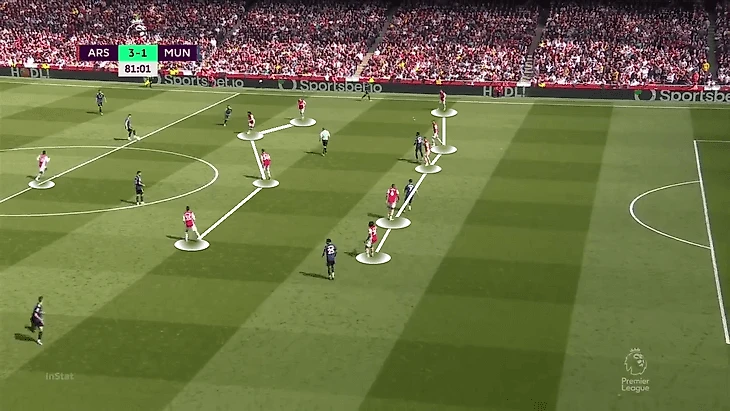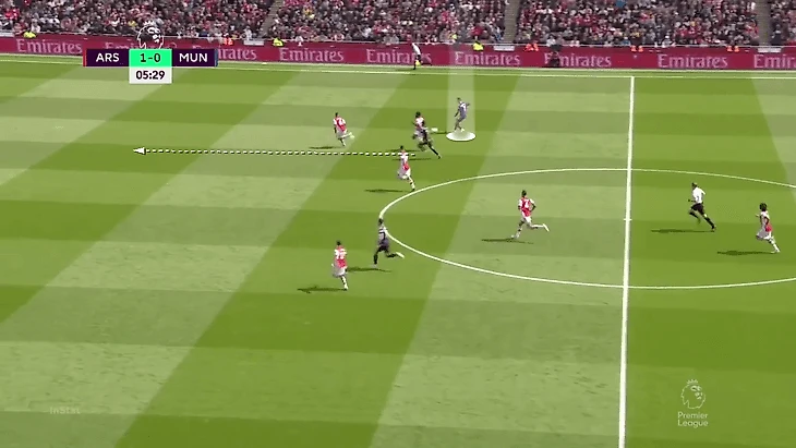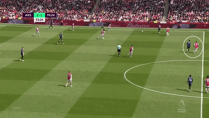 В теории «Юнайтед» мог чаще вовлекать в прессинг защитников и накрывать Эдегора и Смита-Роу, но как подметил Рангник, команда прессинговала только ограниченной группой игроков (по сути только нападающие и полузащитники). Из-за этого весь вопрос сводился к тому, сможет ли «Арсенал» доставить мяч до свободных футболистов.