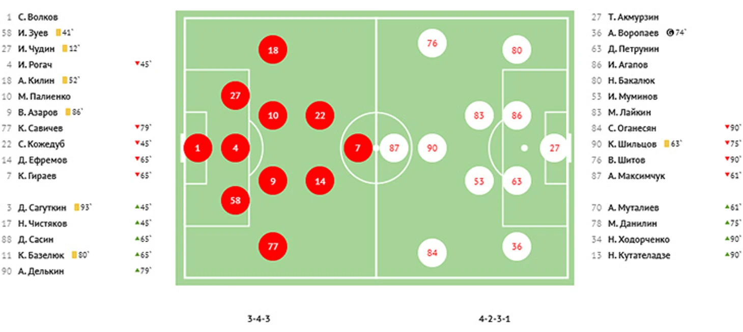Матч в Волгограде можно разделить на два непохожих друг на друга тайма. В первом из них наставник хозяев Артём Куликов по-тренерски переиграл своего визави Вадима Гаранина. Красноярцы до перерыва могли и три гола получить, если бы не феноменальная игра в «рамке» их вратаря Михаила Опарина. А пропустили гости со стандарта. Сергей Серченков подал с углового на ближнюю штангу, Николай Кипиани затылком скинул мяч во вратарскую, а там уже Виталий Шахов также головой спокойно переправил его в сетку.
