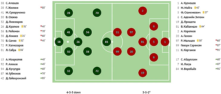 После перерыва краснодарцы очень чётко, хладнокровно и технично действовали у чужих ворот, а также грамотно и слаженно - у своих, что и позволило им добиться крупной победы. На 58-й минуте после подачи справа почти с линии вратарской мощно с разворота, с отскоком от газона в касание пробил Нури Абдоков. Без шансов для Андрея Голубева. А на 79-й минуте Михаил Маркин откликнулся в центре штрафной на заброс слева и в падении красиво отправил мяч под левую от Голубева стойку.