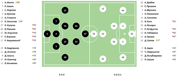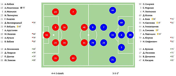 А вот во втором тайме игра перевернулась на 180 градусов, чему поспособствовали замены, вовремя проведённые Гараниным. Гости просто смяли своего оппонента, а два гола из трёх забили как раз вышедшие на замену футболисты - Глушков и Марков.