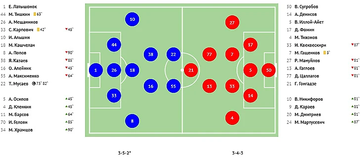 Во второй половине встречи владикавказцы задвигались гораздо активнее, трижды заставив кипера хозяев Алексея Кеняйкина вступать в игру. И все три раза он на ура справился решил возникшие перед ним задачи, не позволив забить пенальти Давиду Кобесову, а затем справившись с двумя непростыми ударами Хетага Хосонова.