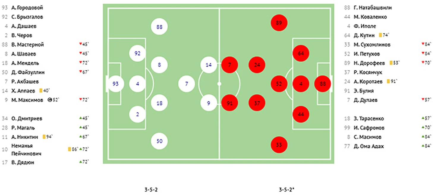 Игра могла перевернуться, когда на 64-й минуте Давид Шавлохов получил вторую жёлтую карточку, и «Алания» осталась вдесятером. Однако «Оренбург» извлечь выгоду из численного большинства не сумел, позволив владикавказцам отстоять свои ворота. В итоге лидер сохранил семь очков отрыва от «Торпедо», а «Алания» осталась на шестом месте.
