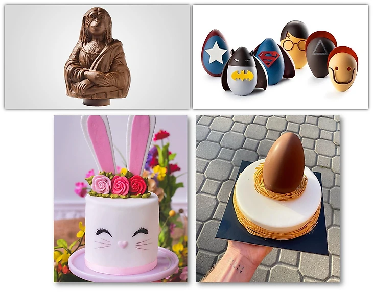 Также в магазинах города на Пасху можно приобрести шоколадную фигурку «Манки Лизы», представляющую собой Мону Лизу да Винчи, но с обезьяньим лицом. Отсылка не случайна – часть денег с продажи перечисляется на реабилитацию и спасение приматов, подвергшихся жестокому обращению. Другие же кондитеры представляют авторские шоколадные яйца и прочие фигурки, а также куличи (паски). Как же без них.