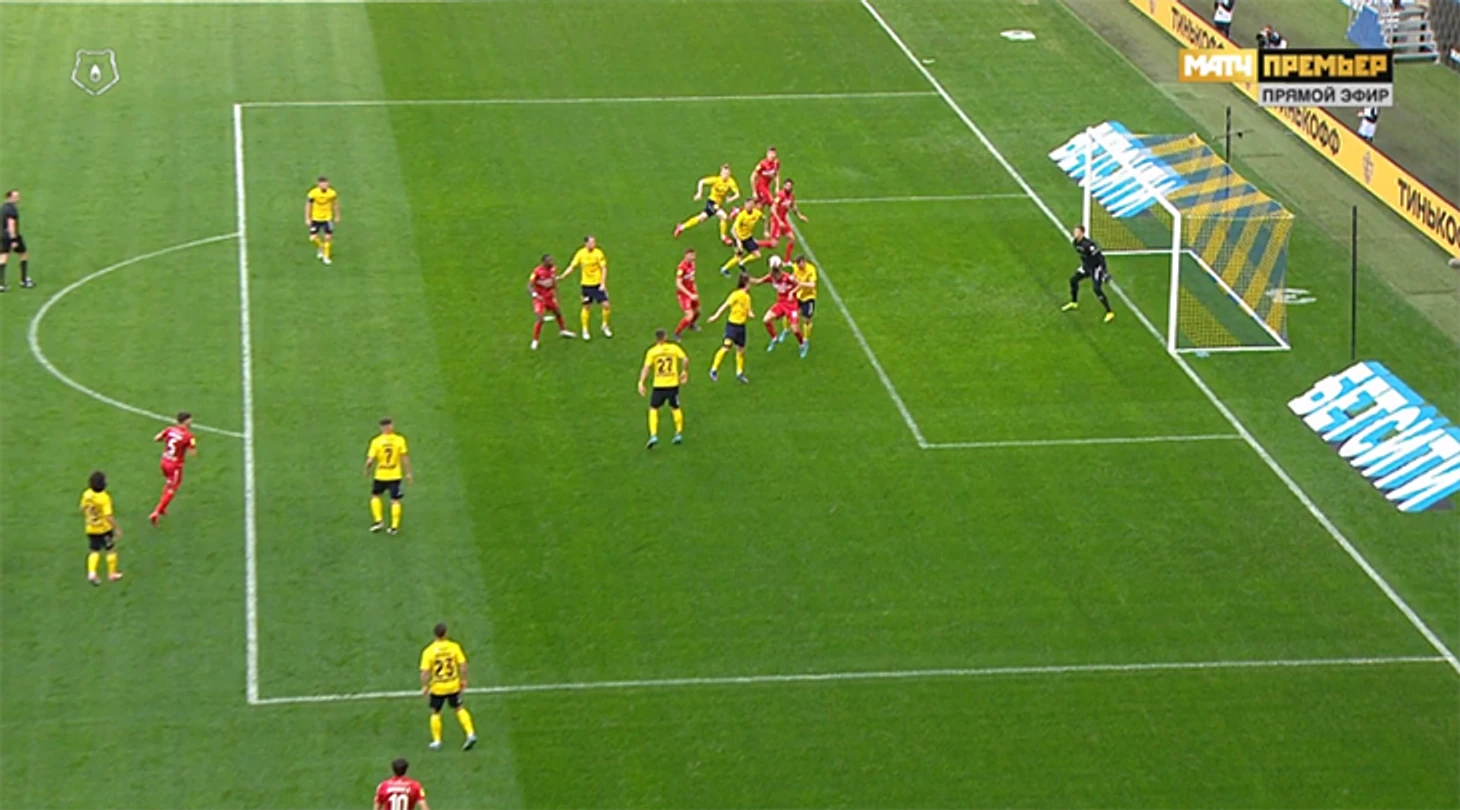 Постарался Роман Тугарев: поймал мяч на углу штрафной, классного пролетел мимо Кофрие с Черновым и не менее элитно пробил в угол.