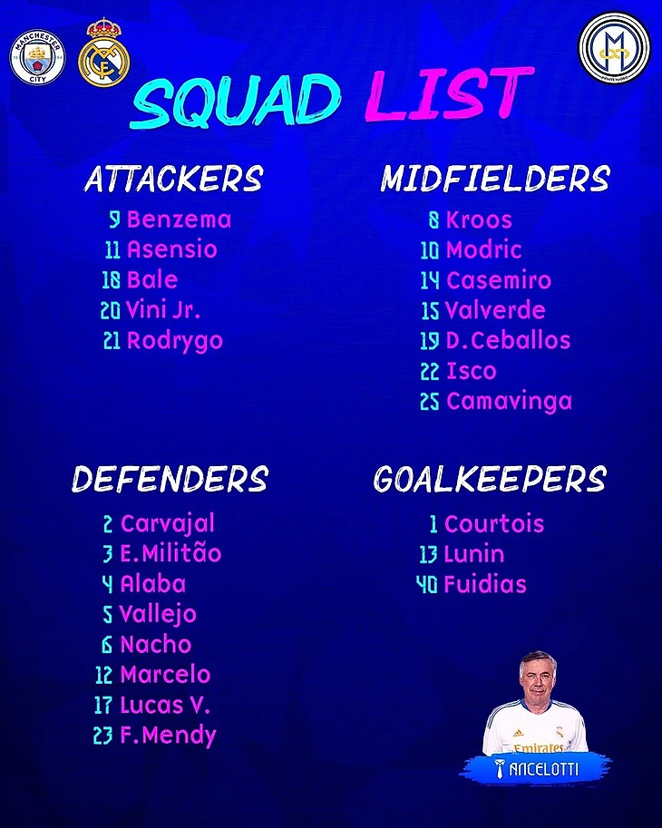 Заявка "Реал Мадрид" на матч против "Манчестер Сити":