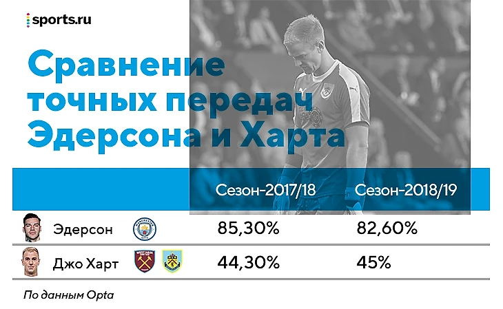 У Гвардиолы был повод сомневаться в передачах Харта. В последнем сезоне до Пепа Джо сделал 721 пас, и лишь 52,6% мячей дошли до партнеров. В следующей кампании Браво отдал 84,3% точных передач. А потом приехал Эдерсон.