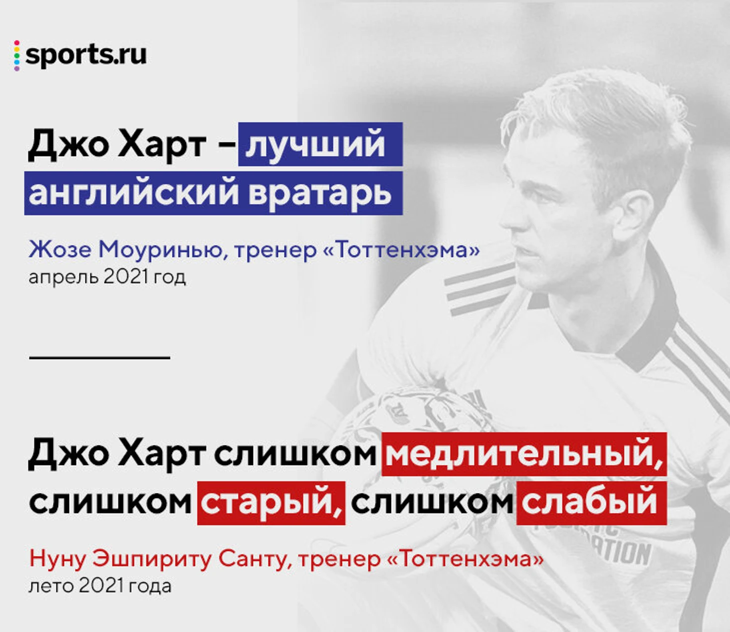 В 2020-м свободного агента подобрал «Тоттенхэм», и Жозе Моуринью выделил ему 10 матчей за сезон: в начальных стадиях кубков и Лиги Европы. Там Джо тоже ошибался: например, в игре с ЛАСК пропустил 3 гола из-за штрафной, 2 из которых явно на его совести.