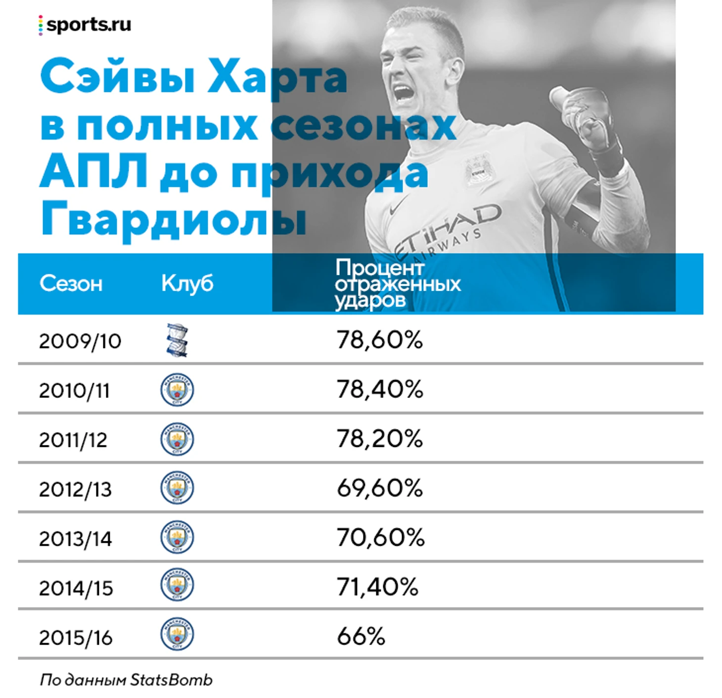 У Джо случались серьезные ошибки, а после исторического чемпионства в сезоне-2011/12 его игра резко ухудшилась. По данным Opta, в первых трех полных кампаниях в АПЛ Харт допустил лишь одну ошибку, приведшую к голу. А процент его сэйвов был в топе лиги. В четырех следующих сезонах он совершил 13 результативных ошибок.