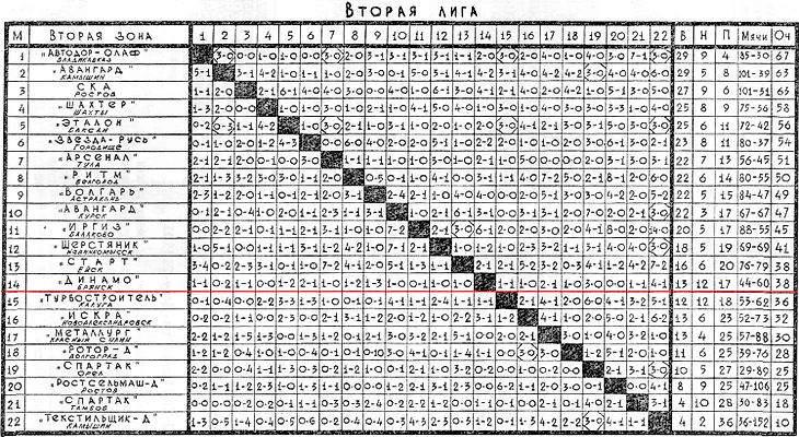 В итоговой таблице первенства динамовцы заняли 14-е место при 22-х участниках. Понятно, что в тех финансовых и бытовых условиях, в которых существовала команда, с учётом молодости и неопытности игроков, никто не рассчитывал, и никто не требовал от неё высоких результатов. Команда показала своё максимум. И 14 место явилось наглядным отражением текущего положения дел.