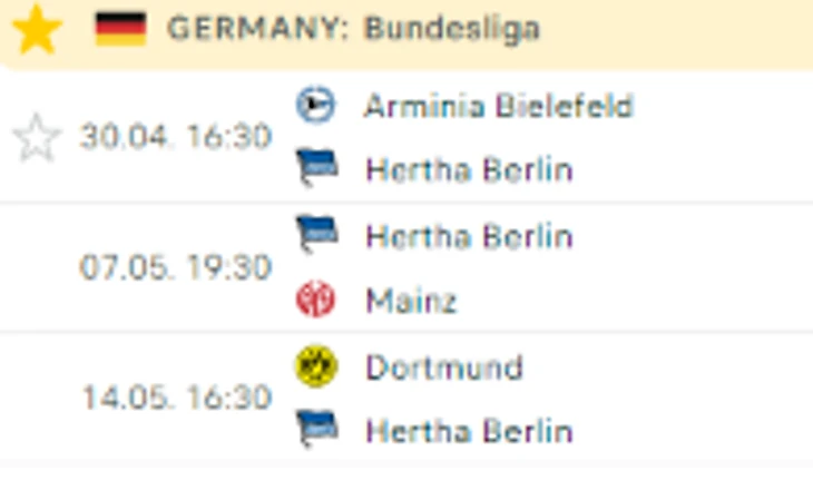 «Герта» - 32 очка. Сколько очков надо набрать для сохранения прописки в Бундеслиге - 6 (но скорее всего хватит и меньше). Оставшиеся матчи в чемпионате: