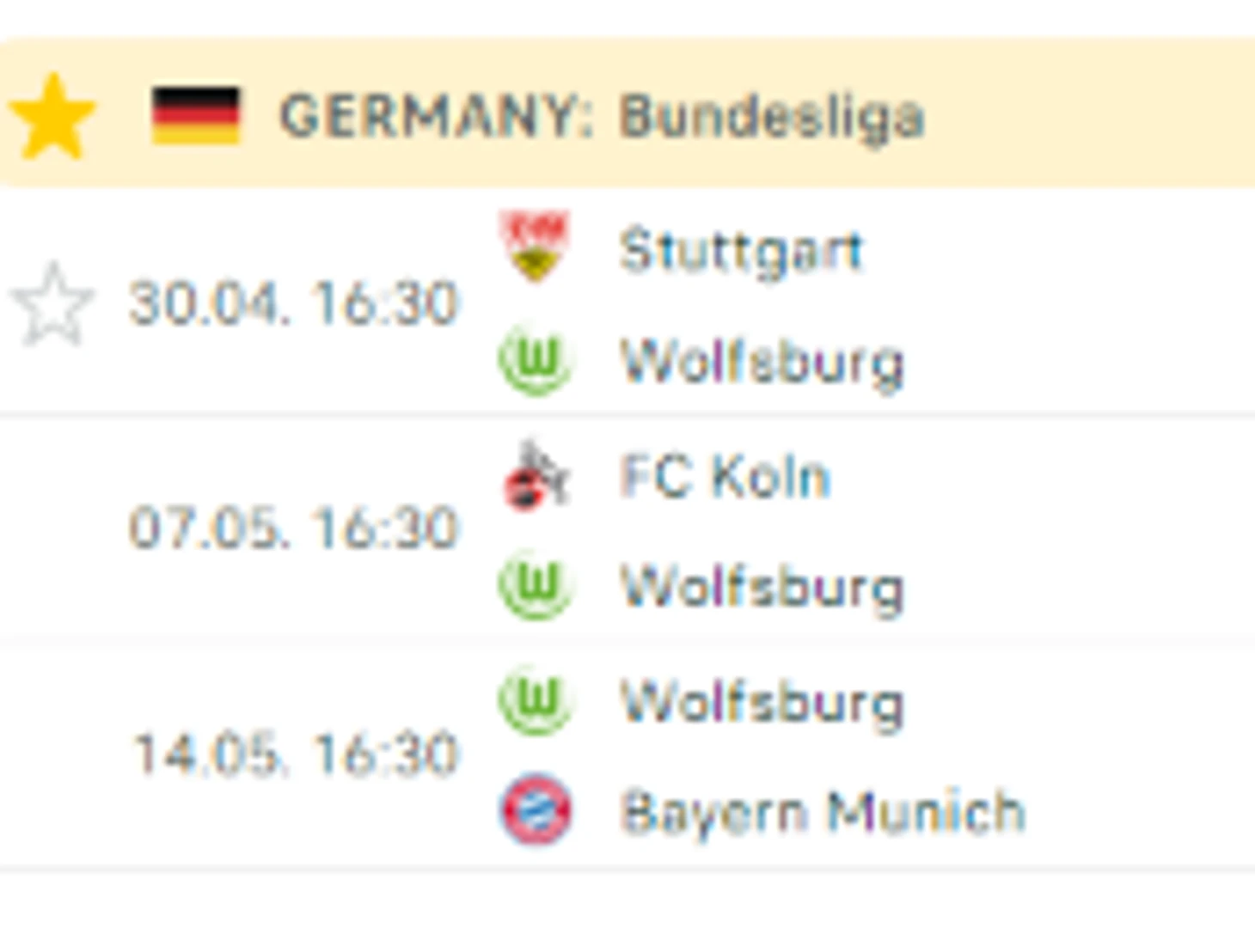 «Вольфсбург» - 37 очков. Сколько очков надо набрать для сохранения прописки в Бундеслиге - 1. Оставшиеся матчи в чемпионате: