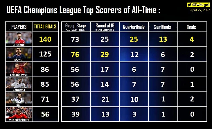Лучшие бомбардиры Лиги чемпионов на каждой стадии