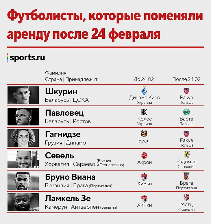 Так случилось у белоруса Александра Павловца. Он принадлежит «Ростову», но сыграл всего пять матчей в концовке прошлого сезона. Осень-2021 он провел в украинском «Колосе», а весну-2022 начинает в польской «Варте». То же самое с Ильей Шкуриным: он начинал сезон в киевском «Динамо» (даже выходил в ЛЧ против «Баварии» и «Бенфики»), а теперь не попадает в состав польского «Ракува».