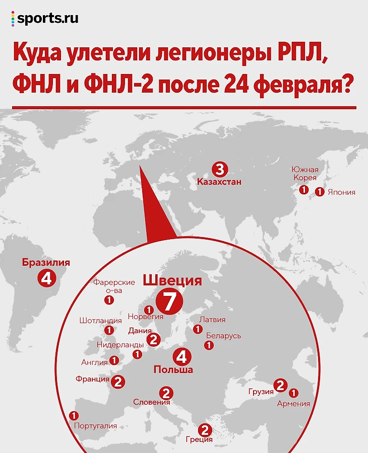 Карта миграции после 24 февраля: легионеры – в Швецию, Бразилию и Польшу. Наши выбирают Крым и Казахстан