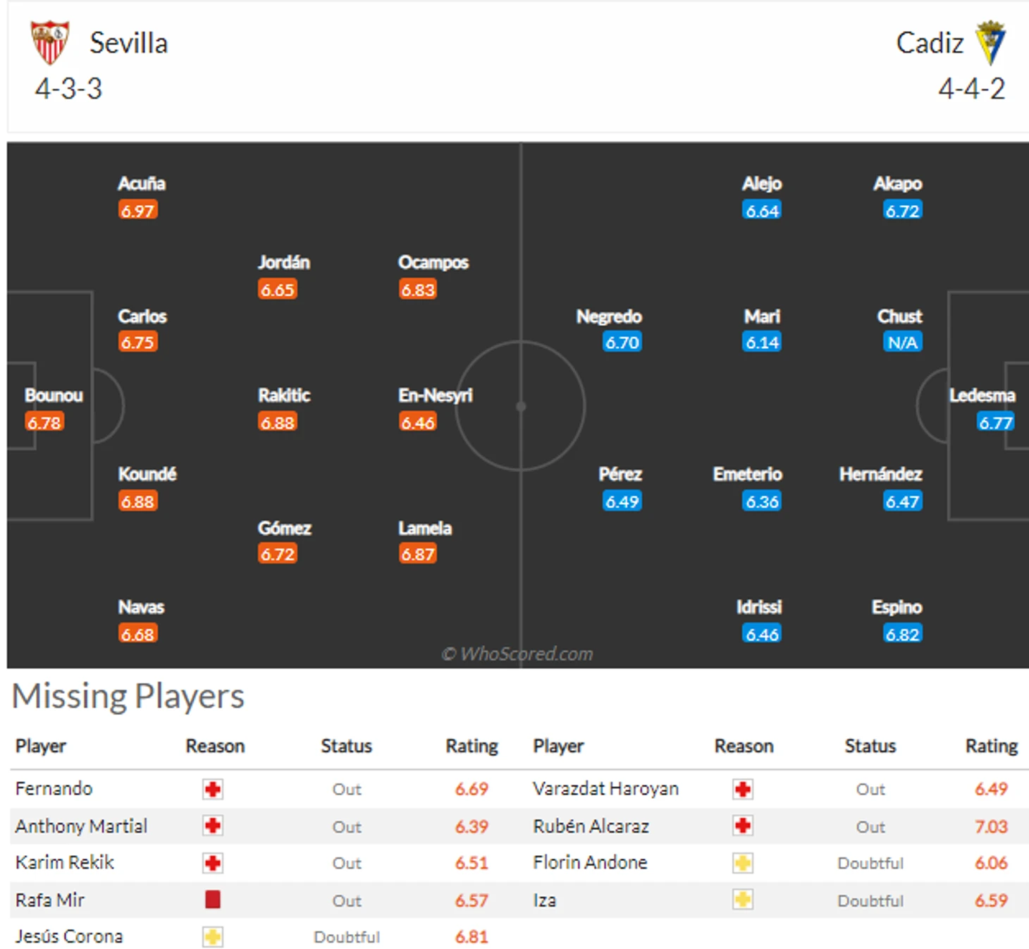 На что обратить внимание: На Хесуса Наваса(6,5) матч против Кадиса станет для аксакала шестисотым в футболке Севильи. И учитывая опыт соседа Хоакина это для вингера совсем даже и не предел..