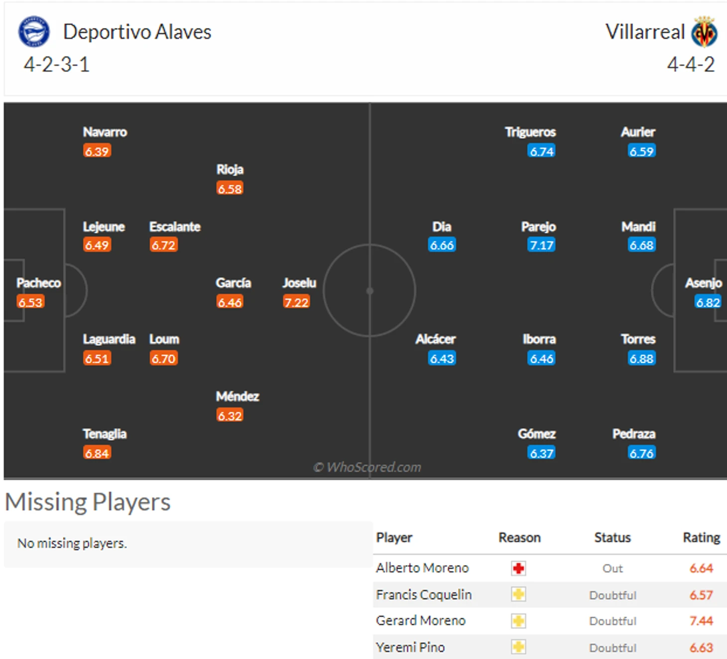 И это даже не считая Пино(6,5), Коклена(6), Альбиоля(6) и Жерара Морено(8,5), имеющих законный повод для ротаций в виде надолеченых повреждений.