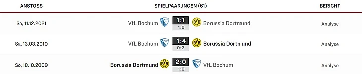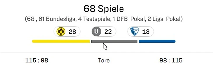 «Бохум» проиграл свои последние восемь матчей высшего дивизиона «Дортмунду», в последний раз победив их со счетом 1:0 13 сентября 1998 года;