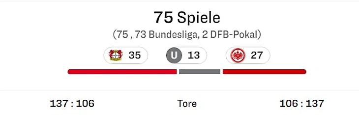 В 73 матчах Бундеслиги между «Леверкузеном» и «Франкфуртом» ни разу не было нулевой ничьей. Ни одно другое противостояние не проходило так долго без нулевой ничьей.