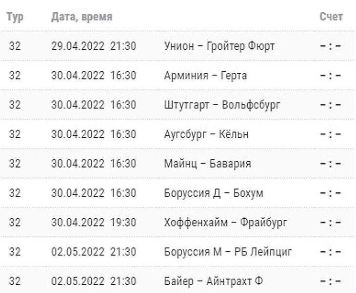 Не сыграют: Аамада, Нарти, Санко, Силас, Штенцель – Отавио, Ван де Вен, Вальдшмидт, Вильям;