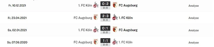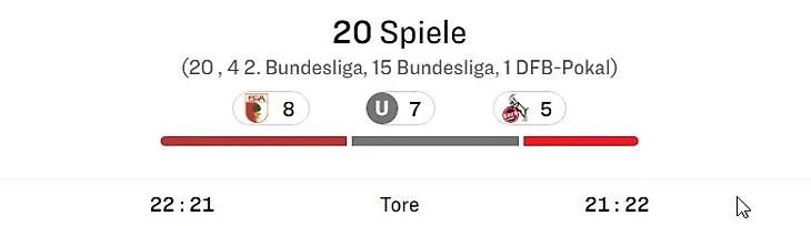 В прошлом сезоне «Кельн» впервые за семь попыток обыграл «Аугсбург» на выезде. Они проиграли три из предыдущих шести матчей.