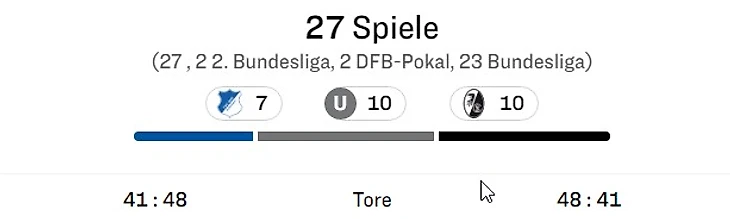 Флориан Крюгер — единственный игрок «Билефельда», забивавший с тех пор. Он сделал это в ничейном матче (1:1) против «Штутгарта» в начале апреля;