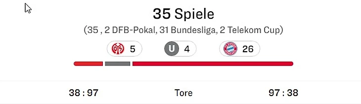 «Майнц» выиграл всего три из 15 домашних матчей Бундеслиги у «Баварии» (одна ничья, 11 поражений);
