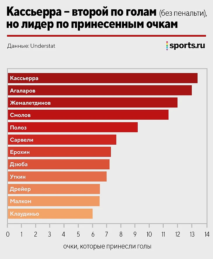 Кассьерра принес команде 13 очков, Дзюба меньше 7 (Ерохин больше)