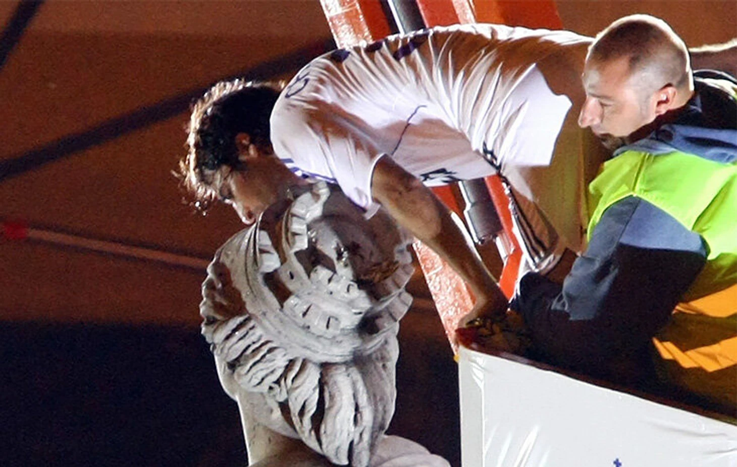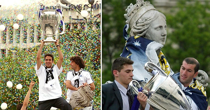 Рауль, Икер Касильяс и Зинедин Зидан тоже расположились рядом с богиней во время празднования выигранной Лиги чемпионов в 2002 году.