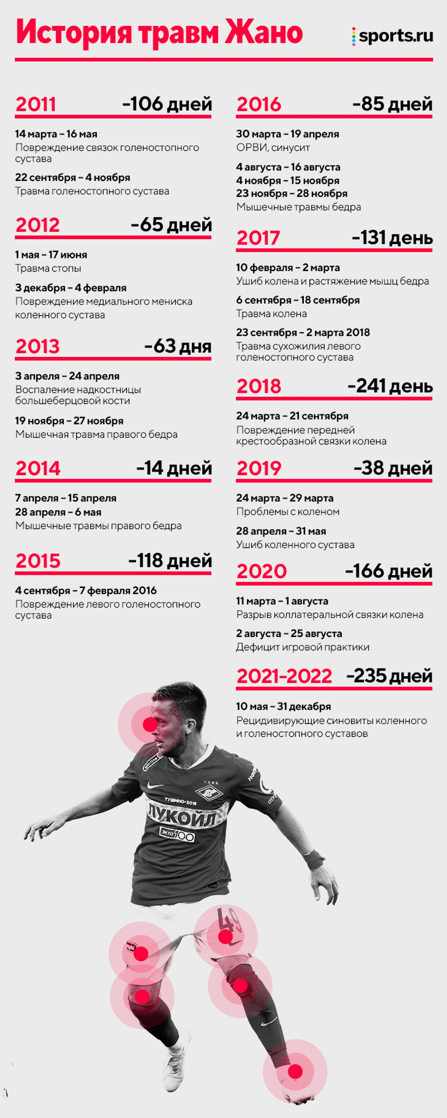 Хроника боли Жано: больше 20 травм, 119 пропущенных матчей, 1262 дня без футбола за 10 лет