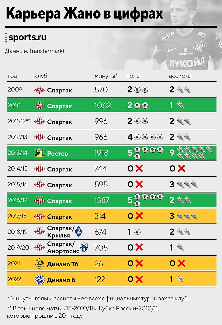 Летом «Спартак» отдал Жано в годичную аренду в «Ростов». «Мы переговорили, он хочет играть, а мы хотим, чтобы он рос. А это сложно, когда два-три года проводишь по десять матчей за сезон. Травмы, конкуренция… Ему скоро 21, надо играть постоянно», – объяснил Валерий Карпин.