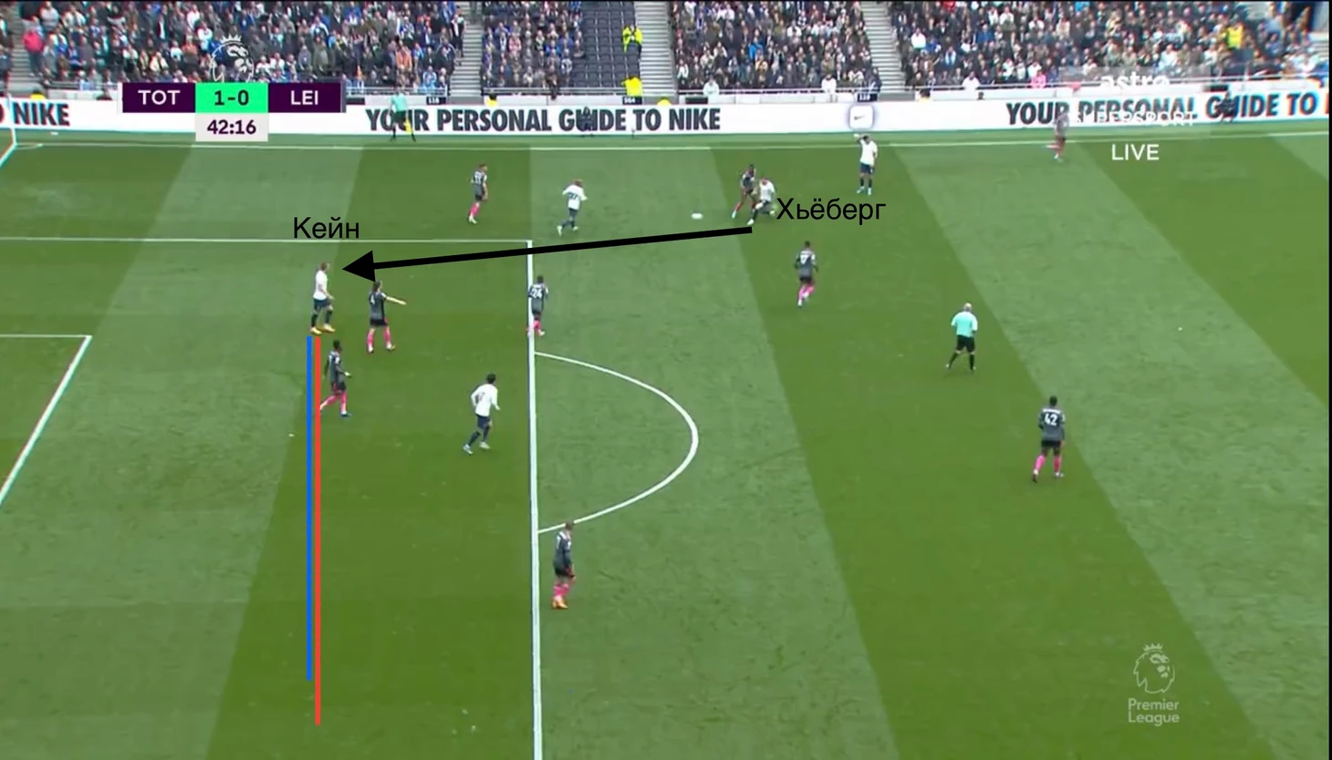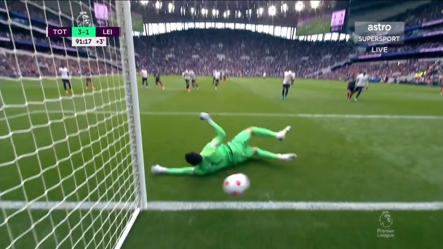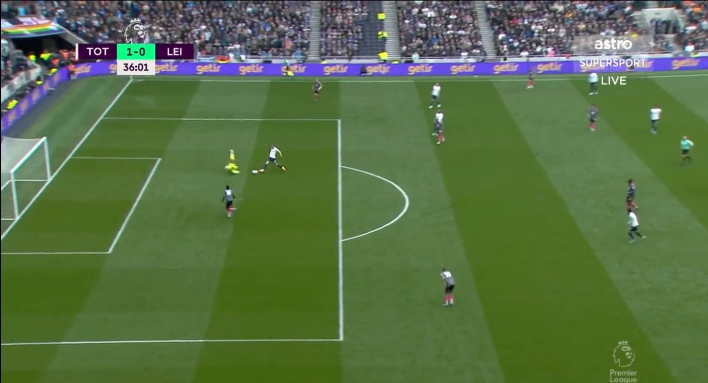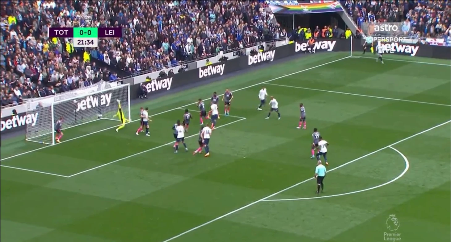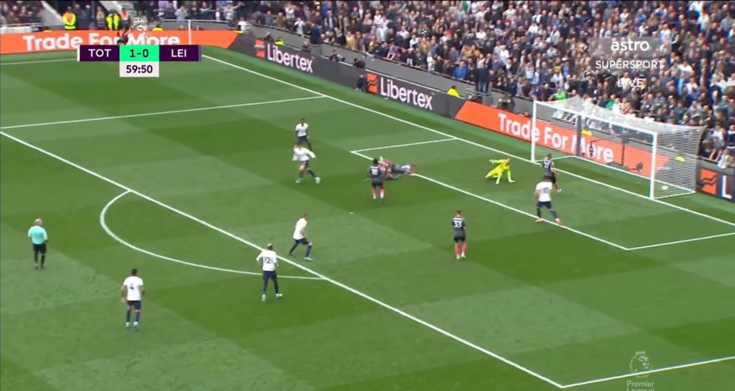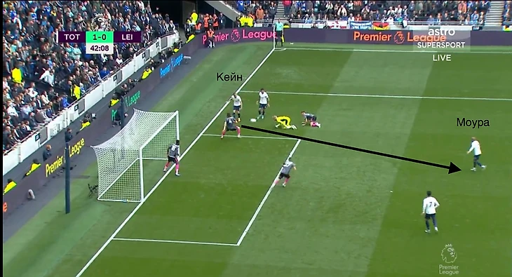Уже под конец первой половины встречи дружелюбное привидение - вратарь Каспер подарил очередной момент Тоттенхэму. Датчанин ошибся при игре на выходе, полагая, что на мяч идёт только он. Затем, удар Моуры самоотверженно заблокировал Кастань. На этом атака «шпор» не закончилась. Хьёберг обокрал Менди и отдал передачу Кейну, который пробил мимо ворот. Но в любом случае, даже если бы Харри забил, гол бы не засчитали из-за офсайда.