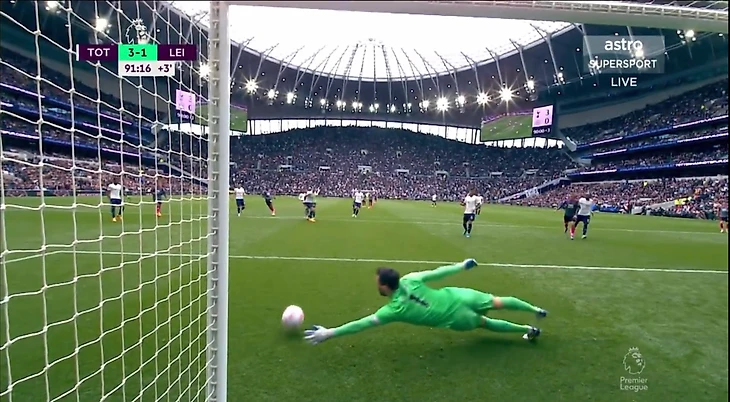Здесь могут возникнуть определённые претензии к Шмейхелю. С одной стороны, мяч шёл в ближний «вратарский» угол, но такие удары достаточно сложно парировать, если ты к ним заранее не готов. Плюс, Кейн пробежал с центра штрафной, значит, здесь есть и вина защитников. На 33 минуте после ошибки Менди у «шпор» возникла возможность удвоить свой отрыв в счёте, но, благодаря действиям Шмейхеля, забить не получилось.