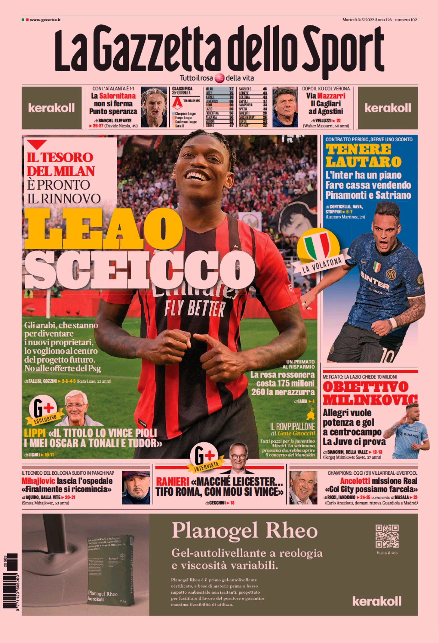 Шейх Леау. Заголовки Gazzetta, TuttoSport и Corriere за 3 мая