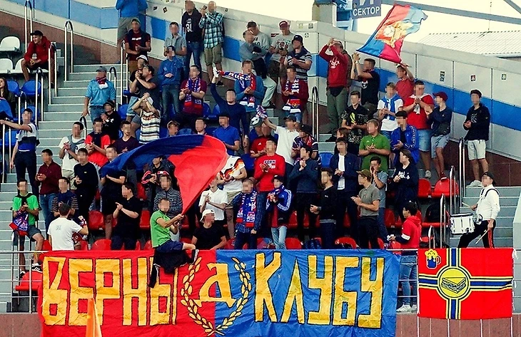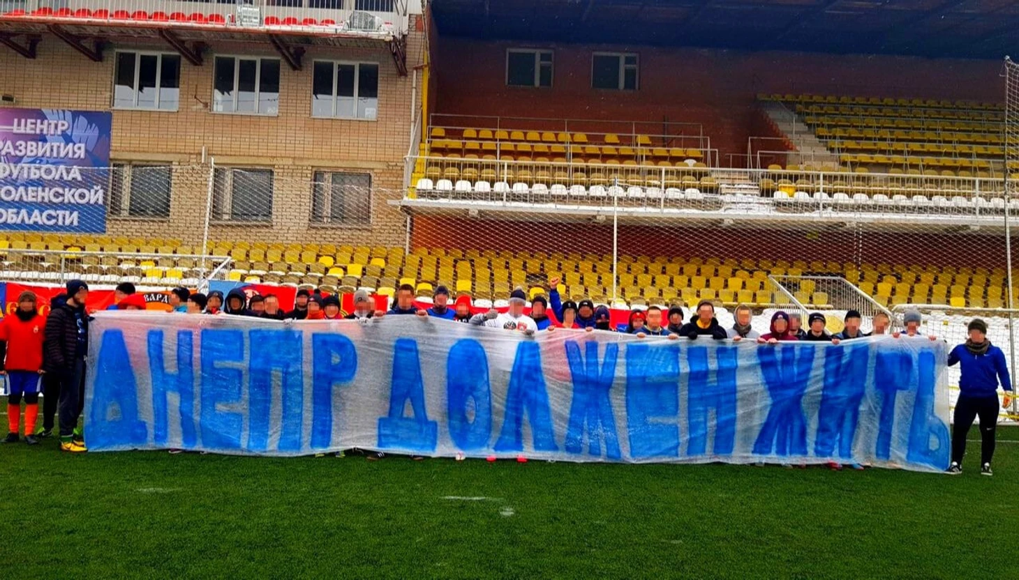 Состав сектора «Днепра» омолодился на 80%, пришло много новых людей. На кубковом матче против «Калуги» сектор смолян собрал около 100 человек.