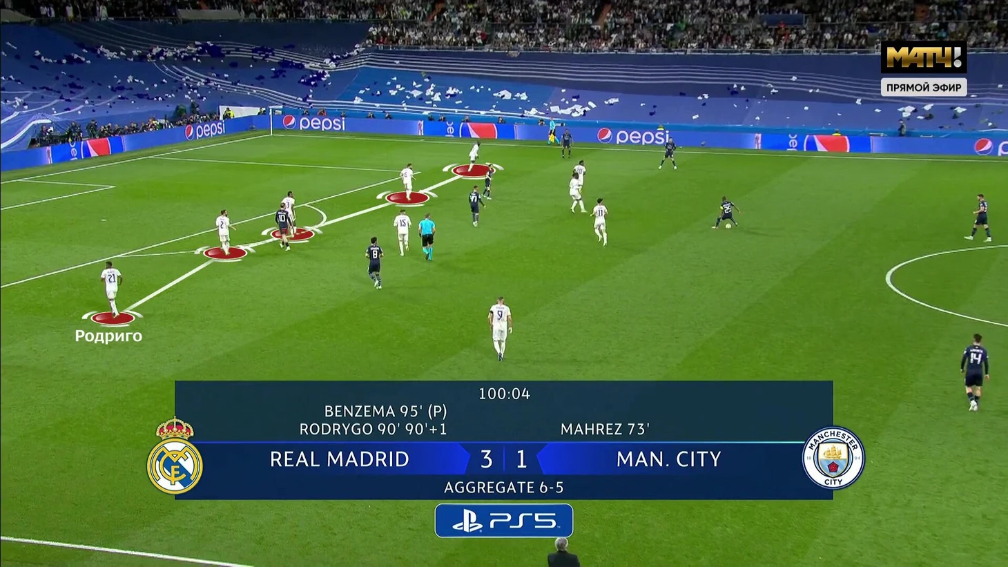 11. Дополнительное время свелось к крайне радикальному рисунку (после быстрого гола «Реала»). Хозяева думают только об удержании счета, а «Сити» много давит, но без реальной остроты.