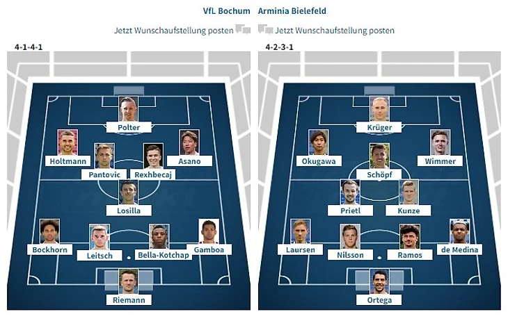 Bielefeld: Ortega - Ramos, Pieper, Nilsson, Laursen - Kunze, Prietl (c) - Wimmer, Schöpf, Okugawa - Serra