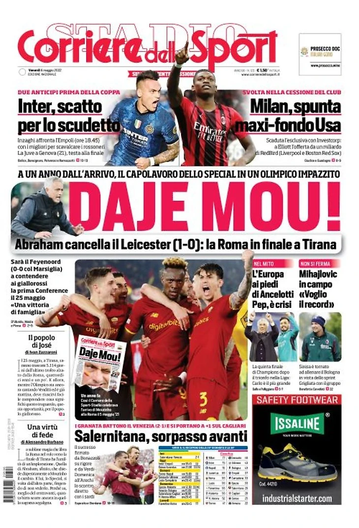 Выход «Ромы» в финал Лиги Конференций, сегодняшние матчи «Интера» и «Юве», а также вчерашняя победа «Салернитаны» – в обзоре заголовков итальянских спортивных изданий в блоге «В гостях у Кальчо».