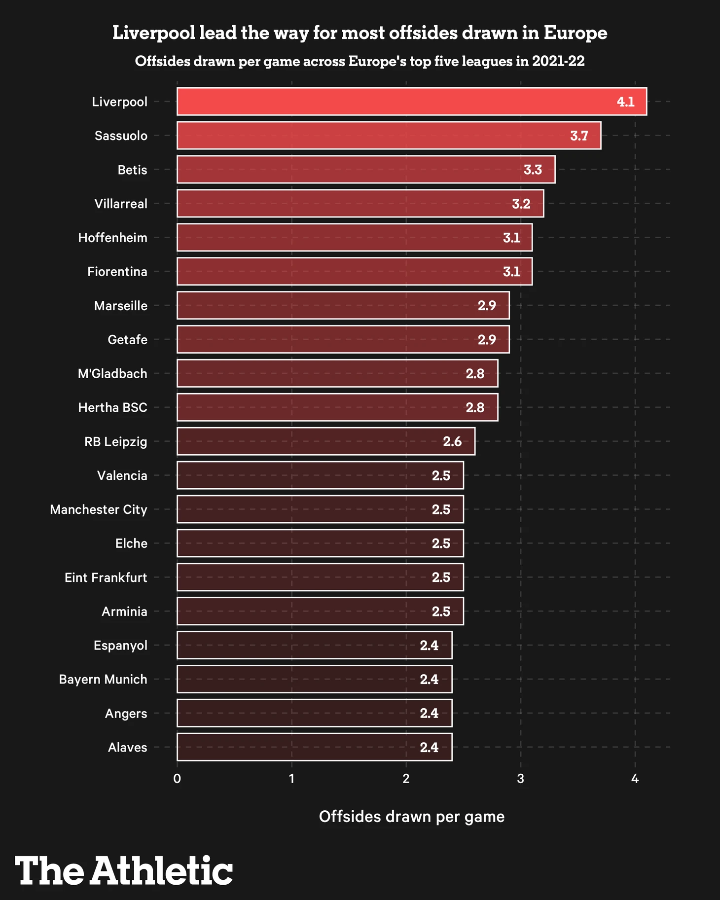 Действительно, «Ливерпуль» занимает первое место по ловле соперников вне игры во всех пяти лучших европейских лигах.