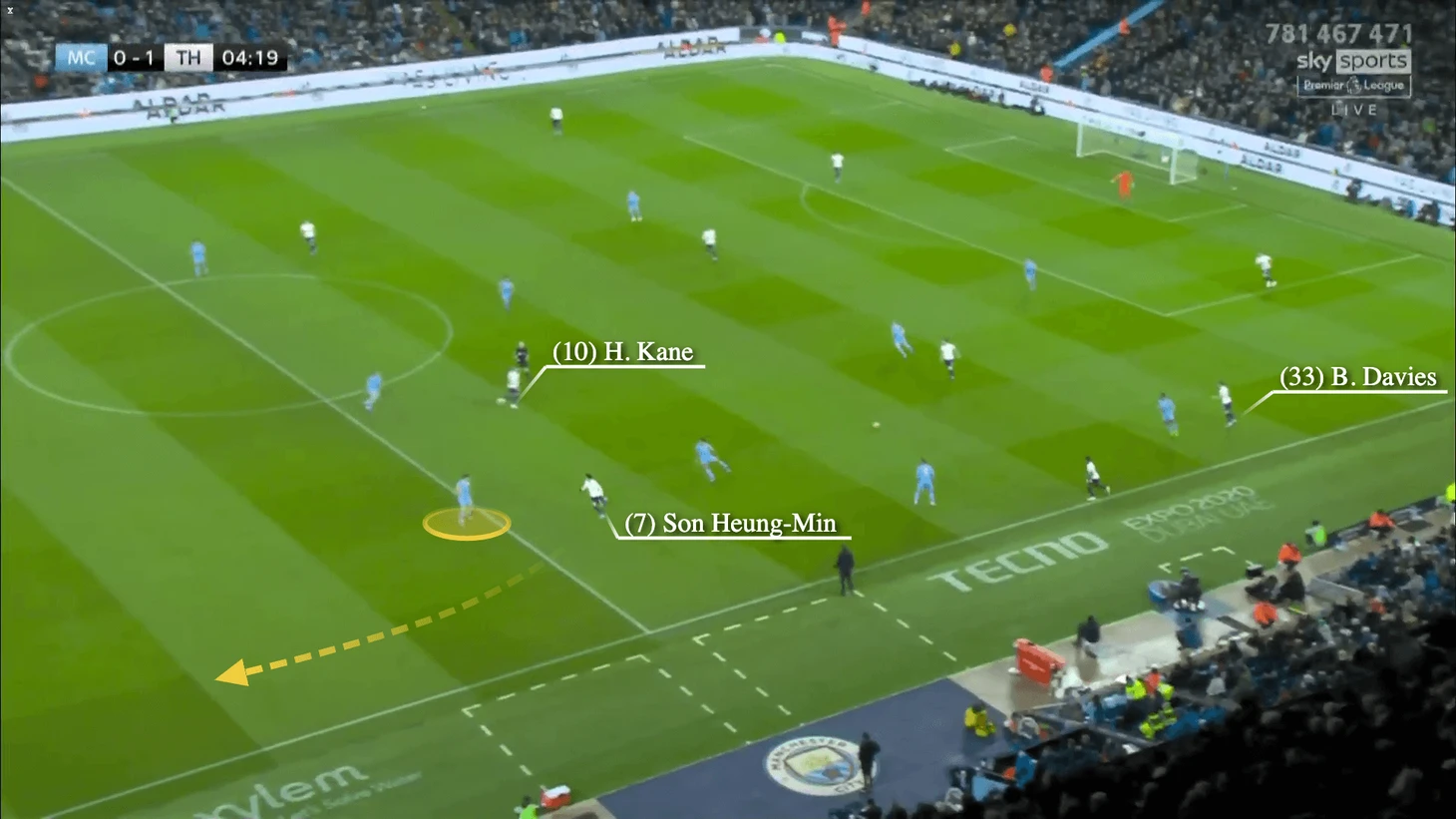 Сон, тем временем, совершает великолепно рассчитанный забег, отправившись в атаку задолго до того, как пас Дэвиса достиг Кейна, одновременно предвосхищая и поощряя пас в одно касание. Кейн может почти вслепую отдать этот пас, потому что знает, куда будет бежать Сон, а также то, что оборона «Сити» будет играть высоко.