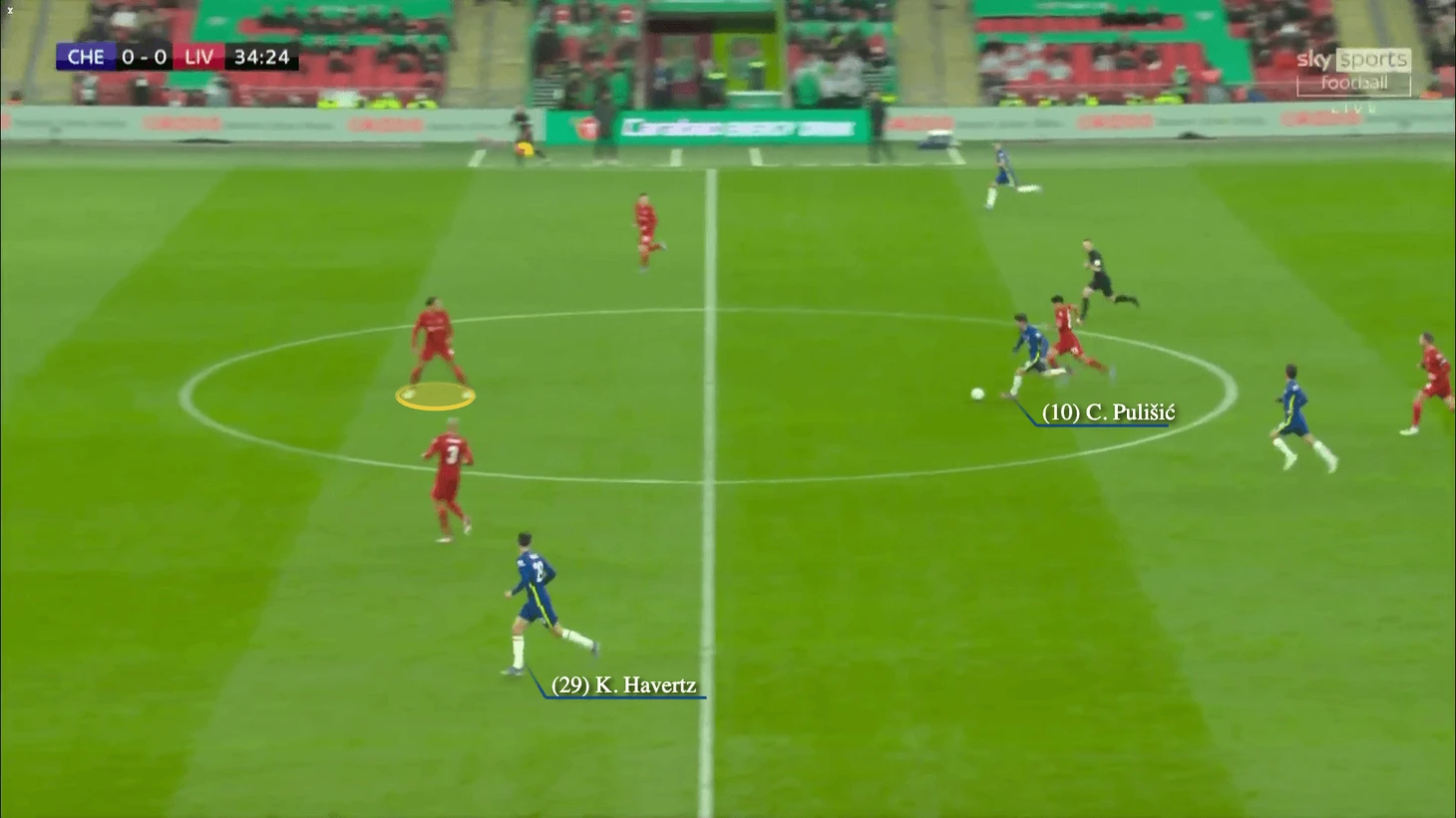 Кристиан Пулишич прорывает сквозь линию полузащиты «Ливерпуля», а Кай Хавертц находится на продвинутой позиции слева. Что касается Ван Дейка, то за две секунды столько всего произошло, начиная с того, что голландец встал боком, удерживая свою позицию и сосредоточившись исключительно на игроке, владеющем мячом…