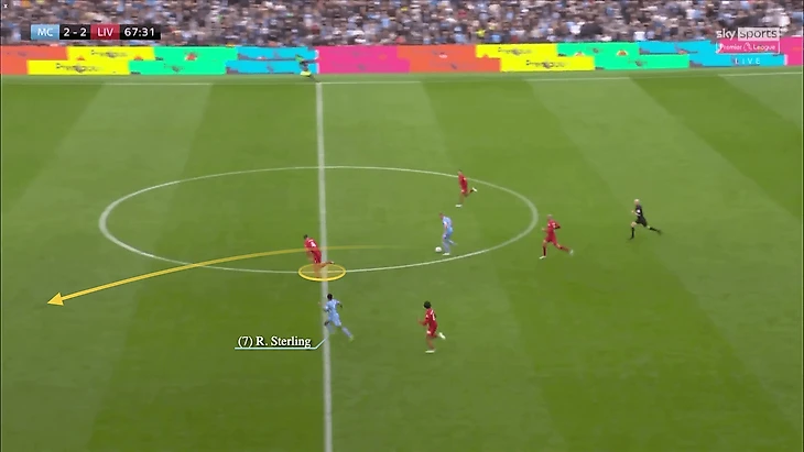 ...но Ван Дейк ускоряется, обкрадывает Стерлинга с минимумом шума, и «Ливерпуль» вновь овладевает мячом.