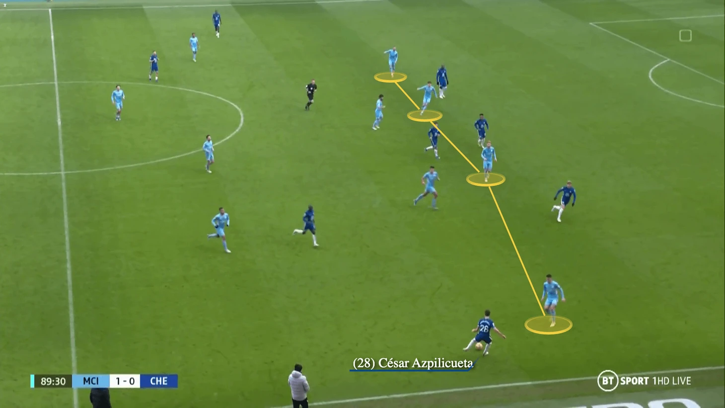 Снимок, сделанный после январской победы «Сити» над «Челси» со счетом 1:0 на «Этихаде», на котором изображен Сесар Аспиликуэта с мячом и позиция защиты Пепа Гвардиолы, имеет много общего.